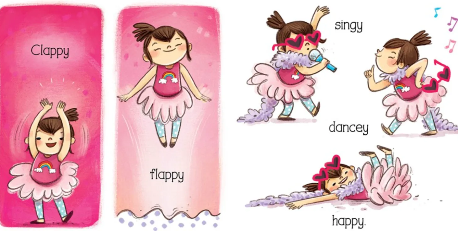 One Springy, Singy Dayis a vibrant, joyous story that follows a diverse cast of young children as they play throughout their day. Inspired by author/illustrator Renée Kurilla’s own “busy bee” two-year-old, this love note from parent to child illustrates the wondrous and boisterous adventure of raising a springy, singy, squeezy toddler.