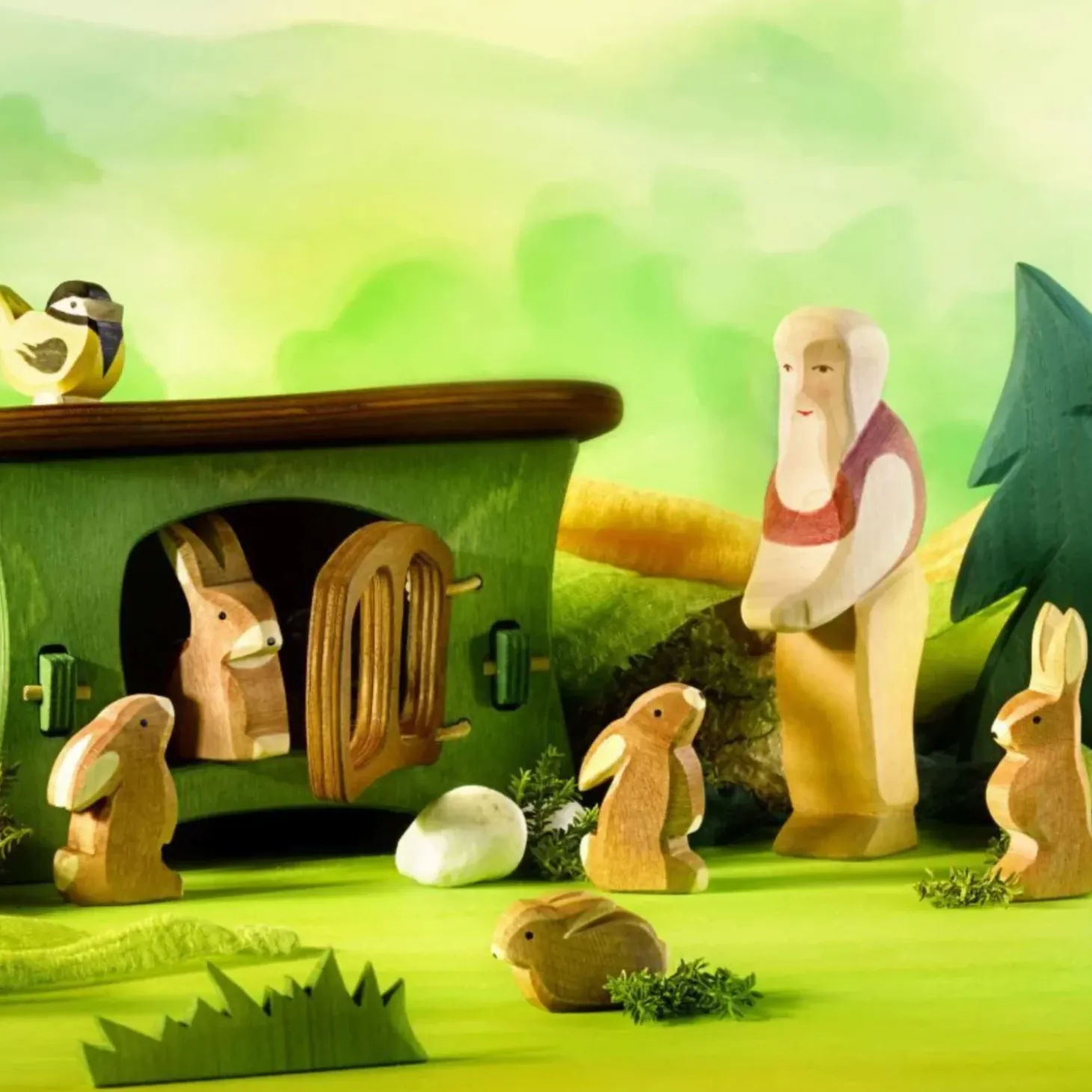 Ostheimer figures are made entirely by hand in Germany. The high quality of environmentally-friendly Ostheimer wooden toys is based on the use of certified materials. The warm, natural material of wood comes from sustainable domestic forestry and certified organic wood, and the selected childsafe colours and organic oils preserve the natural characteristics of the wood and make it tangible for the child. Many senses are thus involved: the grains of the surface of the wood, the smell of high-quality oils, the beautiful sight for the eye. Artistic and practical designing and painting have a focus so that the characteristic peculiarities of an animal’s very typical appearance, in short its spirit, are expressed in it.