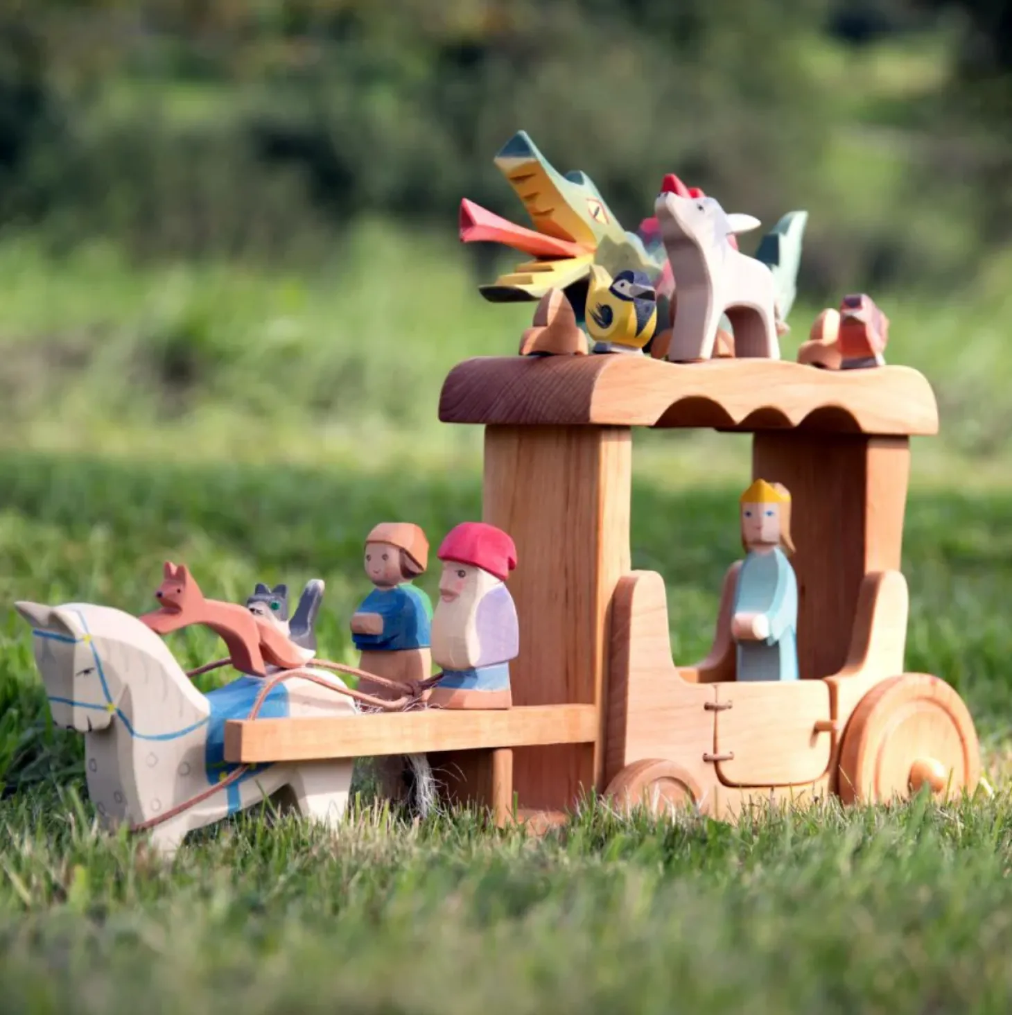 Ostheimer figures are made entirely by hand in Germany. The high quality of environmentally-friendly Ostheimer wooden toys is based on the use of certified materials. The warm, natural material of wood comes from sustainable domestic forestry and certified organic wood, and the selected childsafe colours and organic oils preserve the natural characteristics of the wood and make it tangible for the child. Many senses are thus involved: the grains of the surface of the wood, the smell of high-quality oils, the beautiful sight for the eye. Artistic and practical designing and painting have a focus so that the characteristic peculiarities of an animal’s very typical appearance, in short its spirit, are expressed in it.