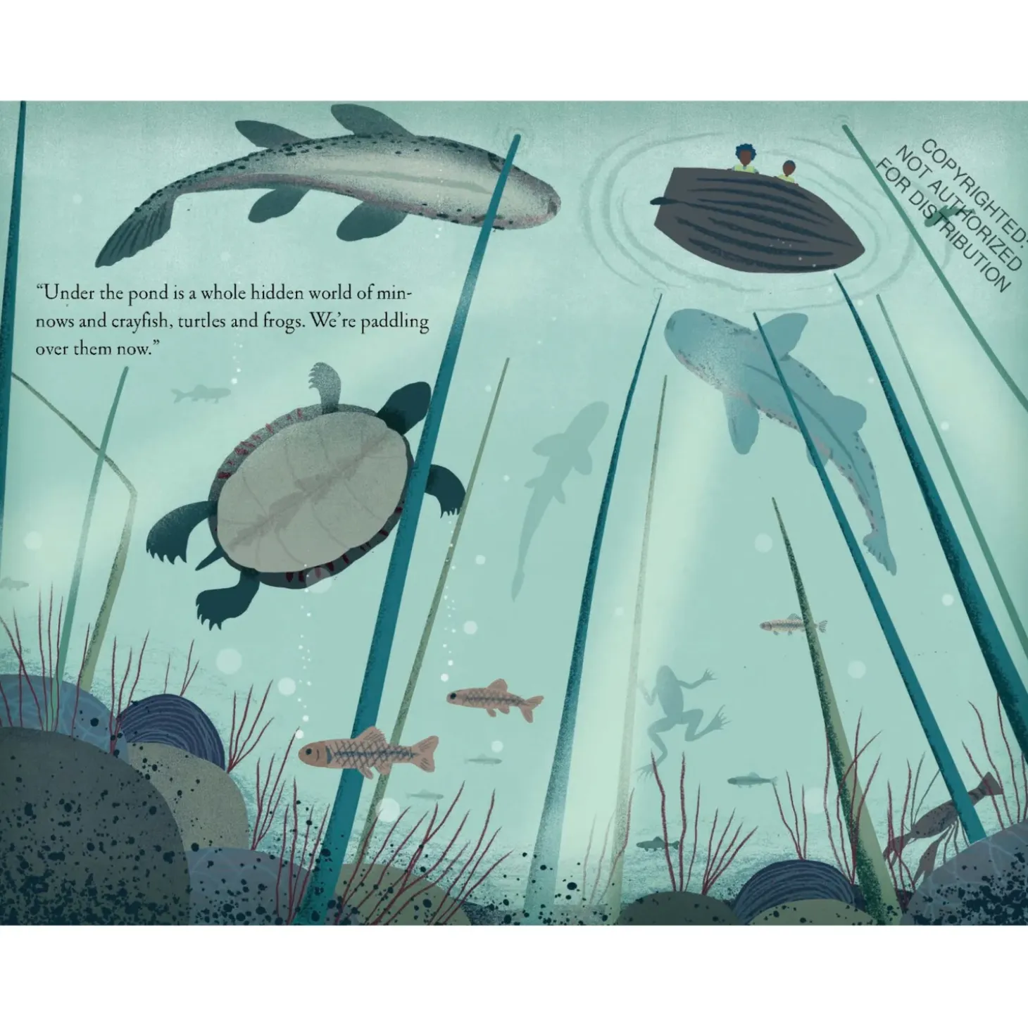 In Over and Under the Pond, readers will discover the plants and animals that make up the rich, interconnected ecosystem of a mountain pond. Over the pond, the water is a mirror, reflecting the sky. But under the water is a hidden world of creatures—minnows darting, beavers diving, and tadpoles growing.