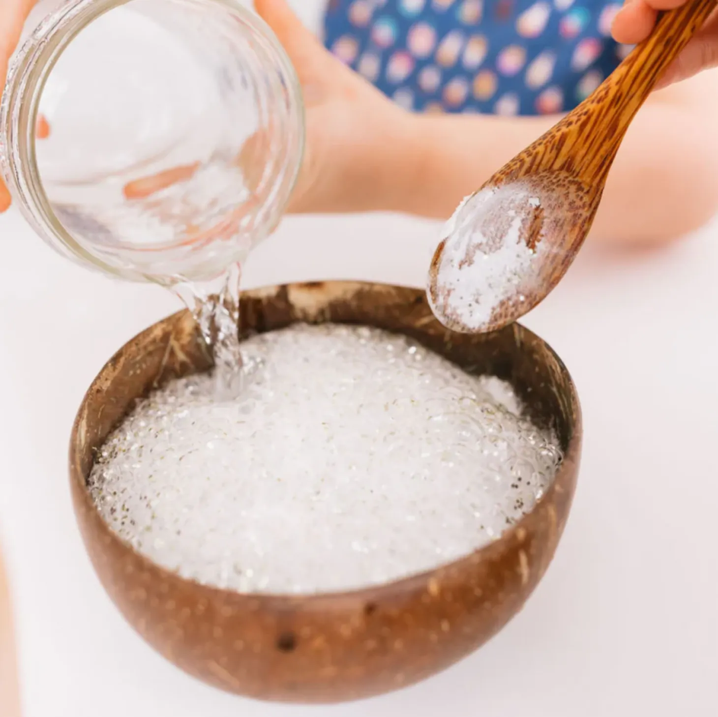 Our Potion Play has been designed to spark mindful water play. Pour a few spoonfuls of the mixture into a large bowl, add water and watch your potion bubble and sparkle.