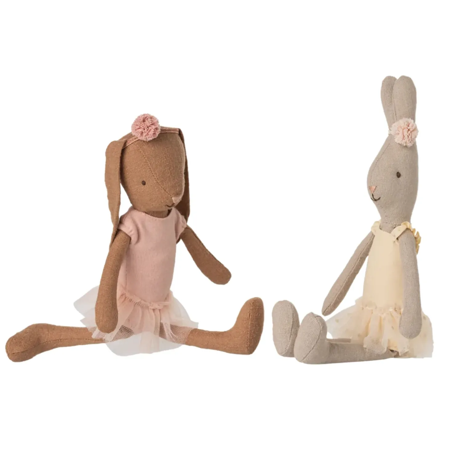 The well known Maileg bunny dressed up as a ballet dancer. It wears a suit, tulle skirt and head decoration.