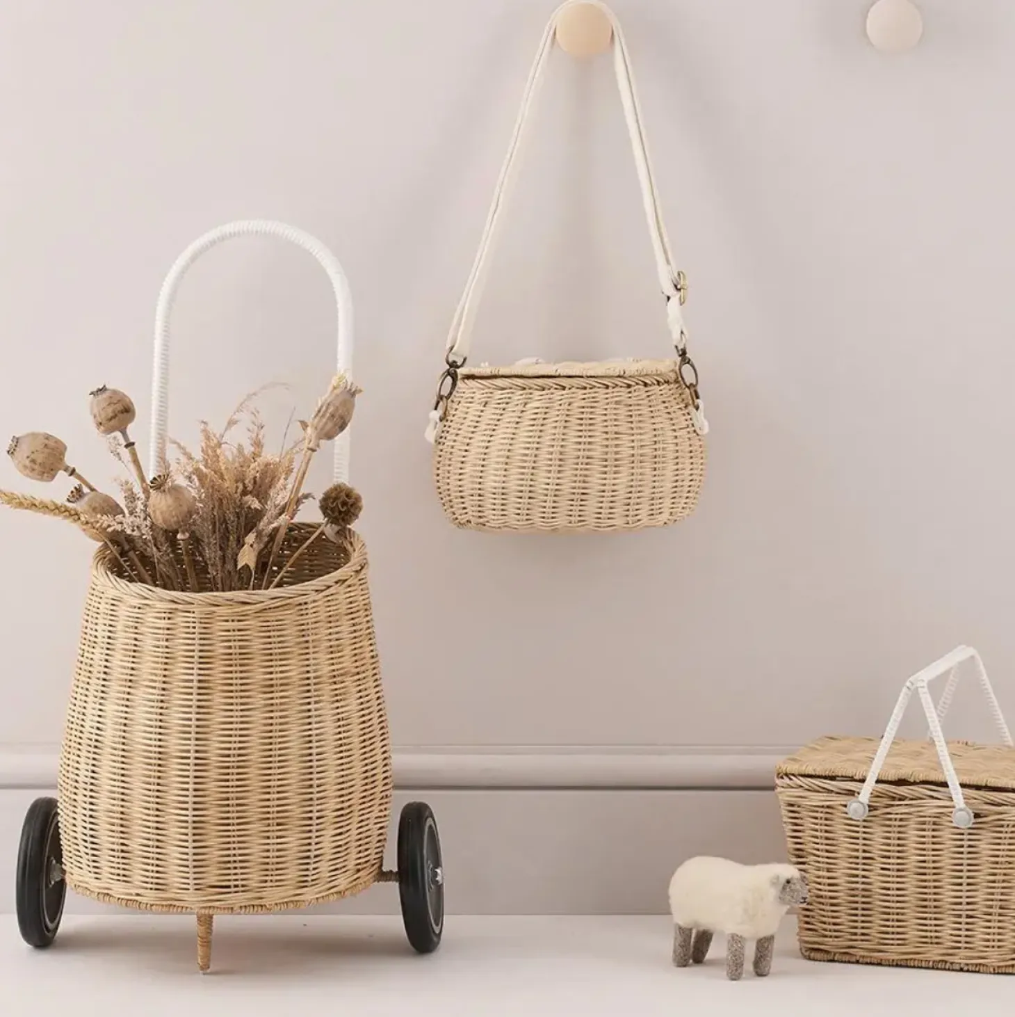 The Olli Ella Rattan Luggy in Straw is a delightful companion for your child’s every adventure, weaving together play, storage, and style with ease.