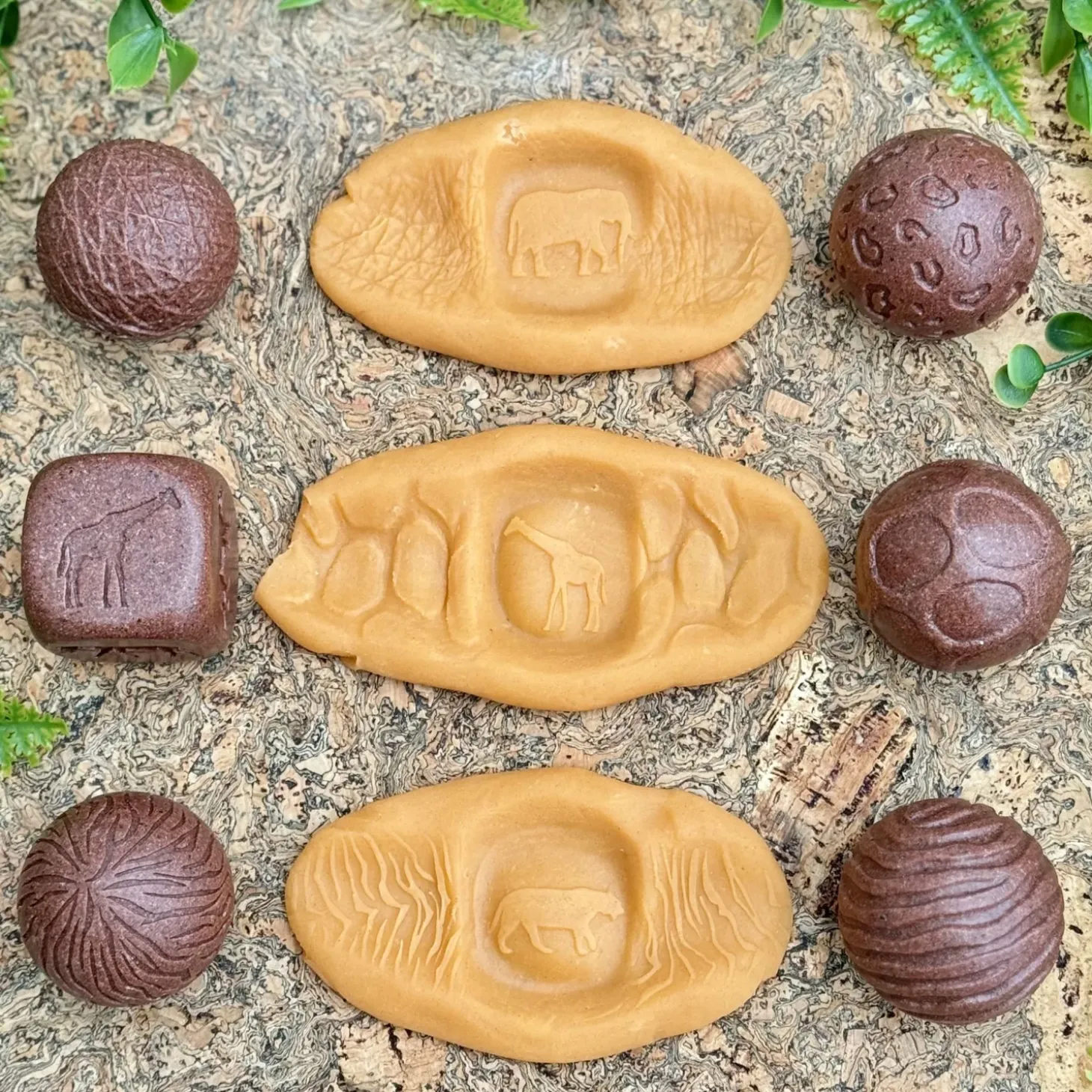 Take a walk on the wild side with this intriguing set of rollers featuring iconic wild animals: giraffe, zebra, tiger, leopard, and elephant. Perfect for interactive ‘Who am I?’ activities, children will enjoy creating tactile patterns in playdough, and stamping to identify the animal owner!