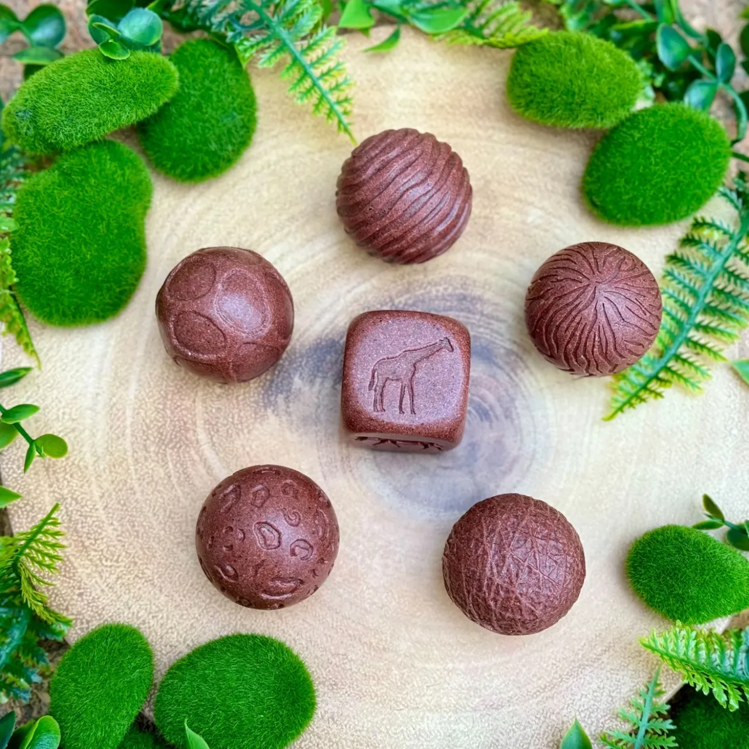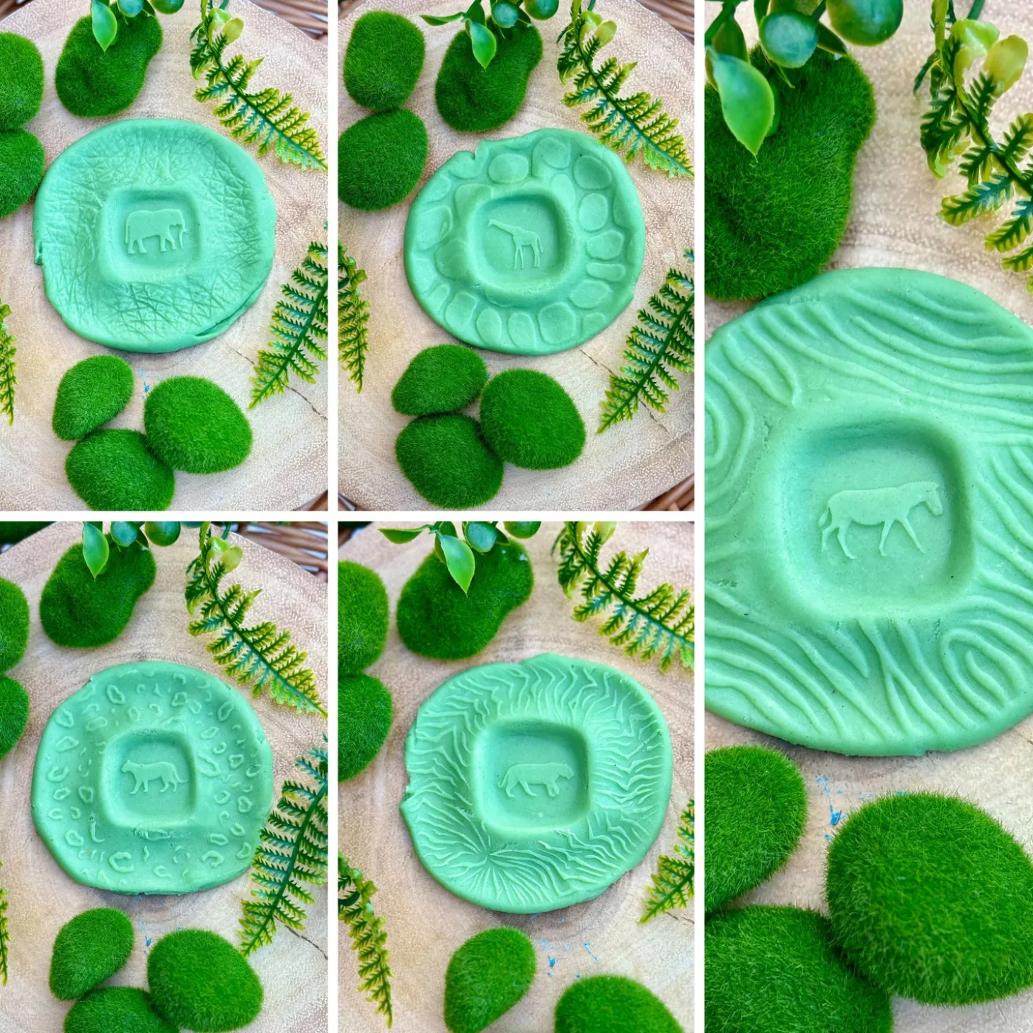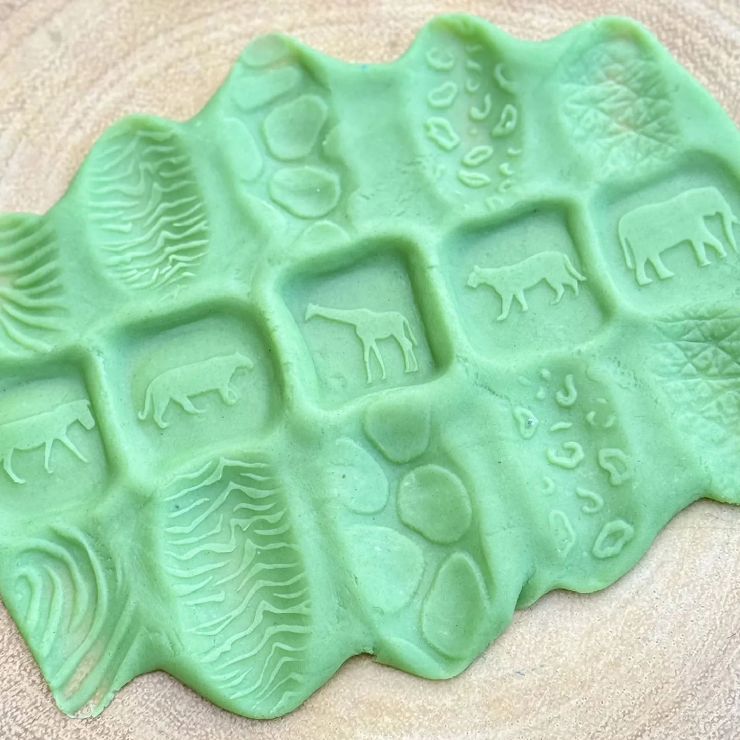 • Contains 5 round rollers and a stamper reflecting iconic wild animals: giraffe, zebra, tiger, leopard, and elephant.