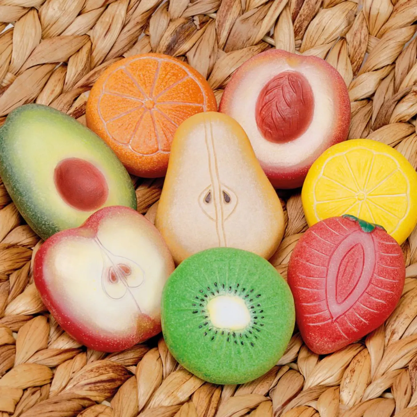 • Set includes eight colourful fruits: apple, pear, peach, strawberry, avocado, kiwi, orange and lemon.