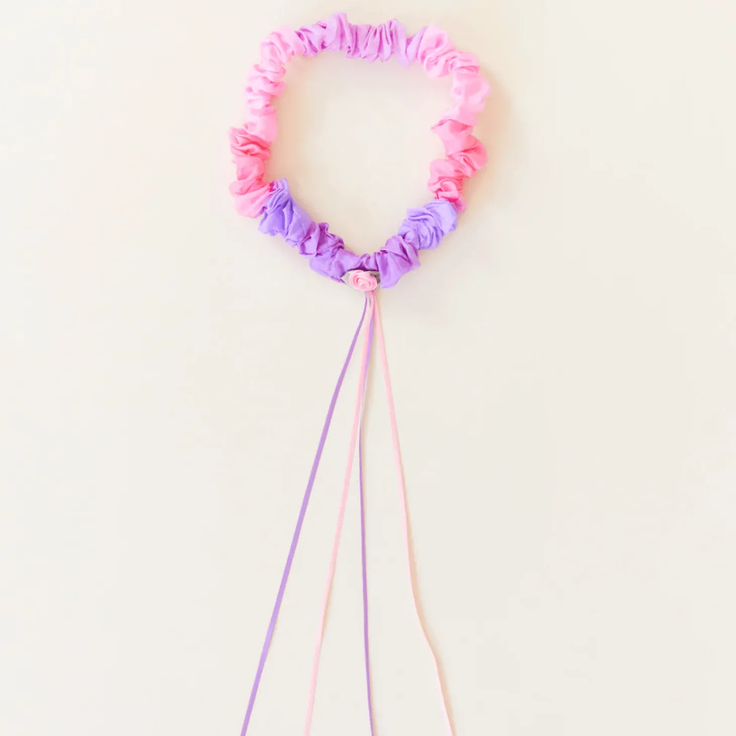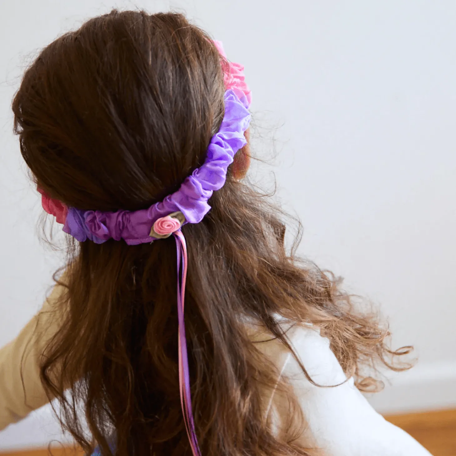 These versatile, 100% Silk Garlandscan be worn simply on the head or waist, orin combination with play silks to create skirts, pants, headdresses, and more! Each garland isfinished with a hand-sewn satin rose and four flowing ribbons, making each one truly one of a kind!