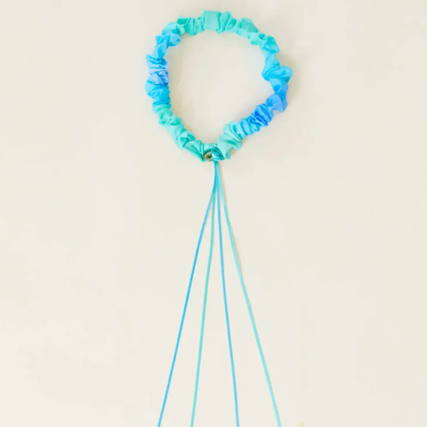 • Silk Garlands feature a stretchy elastic band (18 – 28-inch diameter), wrapped in 100% silk, hand-painted, and silkscreened in our colourways.
