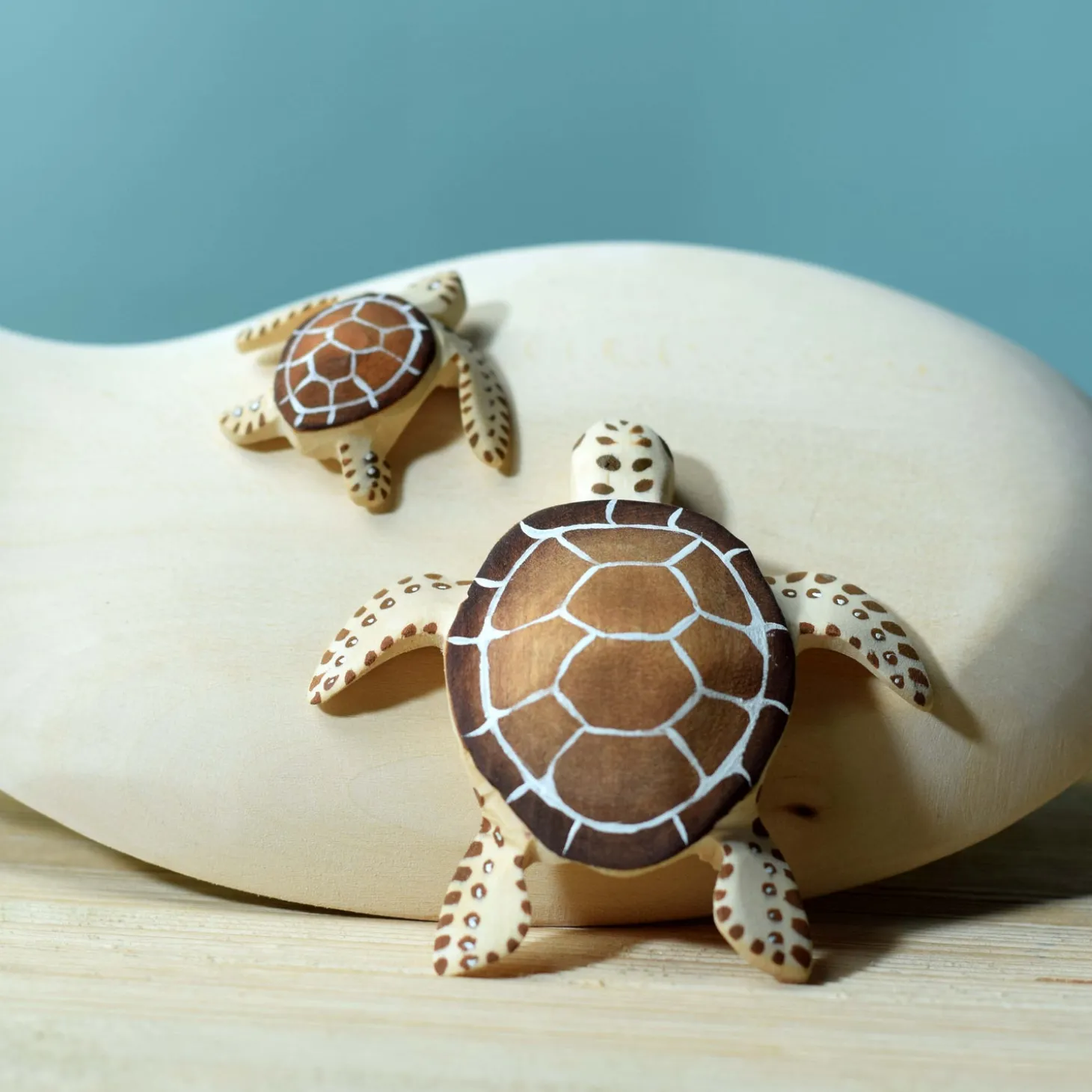Introducing the Wooden Brown Turtle by Bumbu Toys, a meticulously hand-carved creation that invites your child to explore the amazing world of sea turtles. This exquisite wooden toy, crafted from sustainable wood and painted with non-toxic, water-based colours, is perfect for imaginative play and nature-themed adventures. Your child can learn about the important role turtles play in our ecosystems while enjoying the tactile delight of this beautifully crafted piece. The realistic design and smooth finish make it an enchanting addition to any toy collection. Pair it with our Baby Brown Turtle for a charming duo that enhances small-world play.