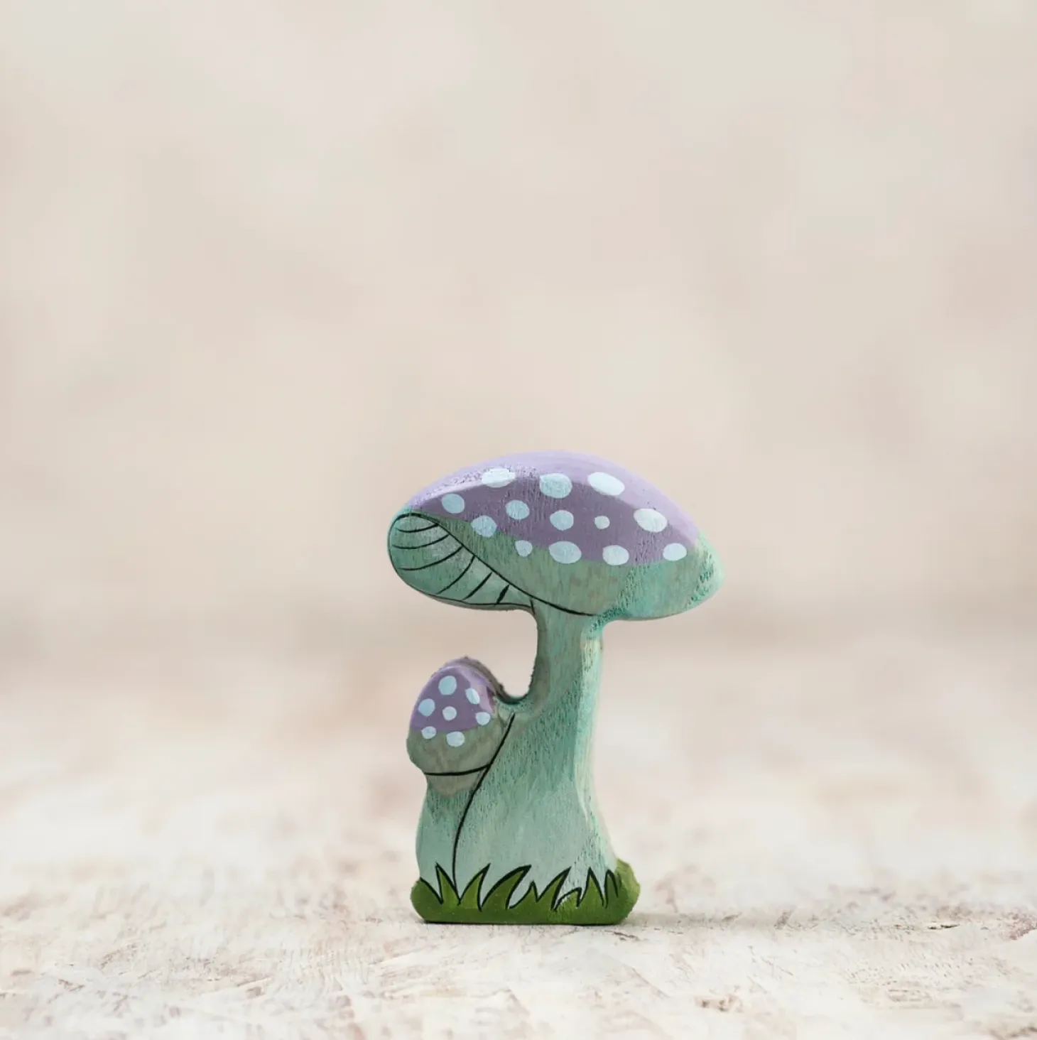 Step into the enchanting realm of the fungi forest with the Whimsical Blue Fairy Mushrooms from Wooden Caterpillar. This captivating set of two blue mushrooms is a masterpiece, meticulously designed to whisk children away on a journey through the mystical world of fungi. Each mushroom, with its vibrant blue hue and delicate craftsmanship, is a gateway to adventure and discovery, perfect for enriching sensory play or pairing with one of our magical mushroom playcloths.