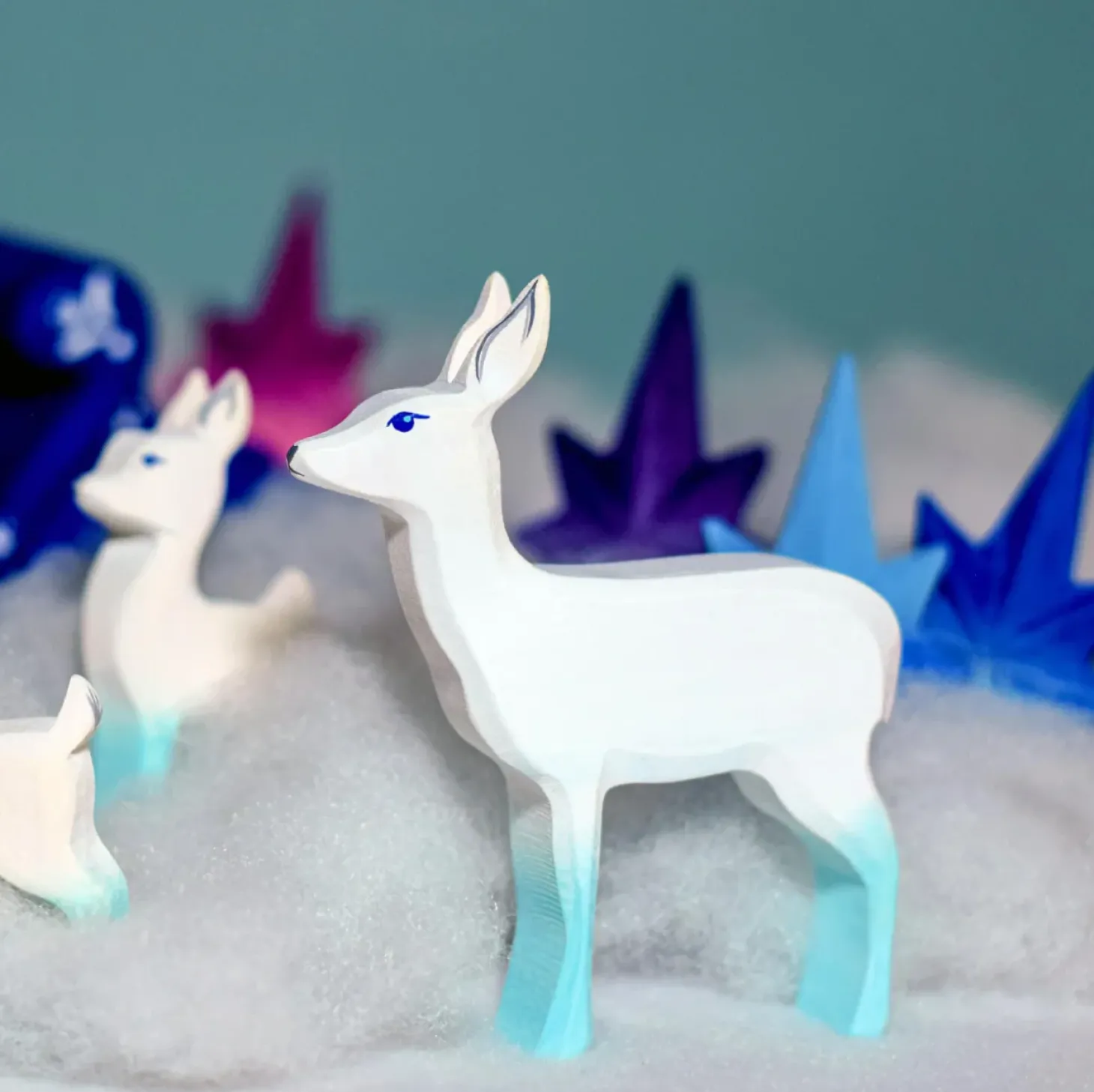 With its intricate carving and soft features, the White Blue Deer encourages storytelling and small-world play, helping children connect with nature while fostering creativity. Its timeless design also serves as a gentle reminder of the magic and tranquility found in forests and mythical tales.