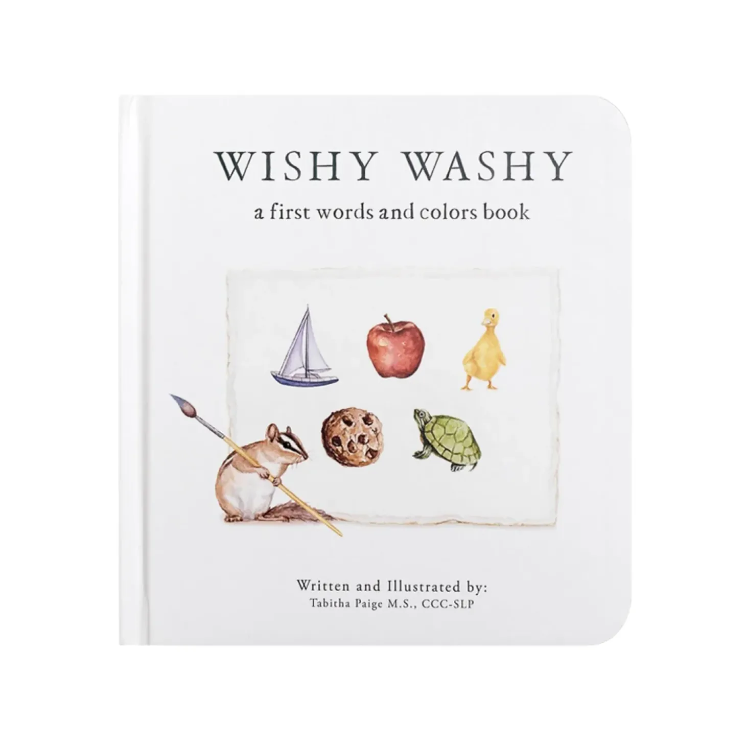 Wishy Washy takes your young child on an adventure as they learn new words through life-like paintings, bright colours, and an animal friend who guides them along the way. Written by licensed speech therapist Tabitha Paige, Wishy Washy features strategically chosen first words that include a child’s earliest developing sounds, such as m, b, p, t, etc. With beautiful hand-painted art from Tabitha, this is the perfect baby book for a baby shower gift!