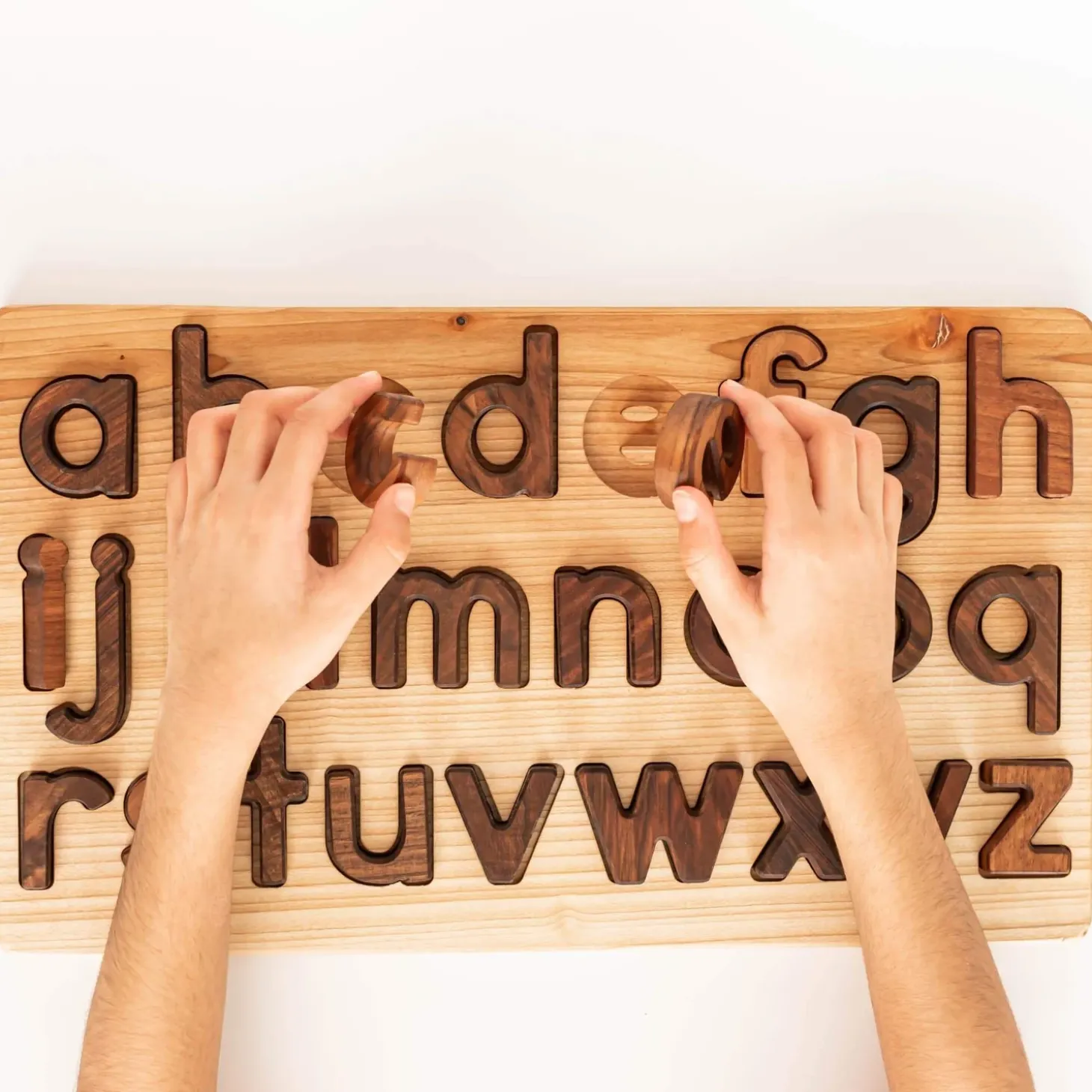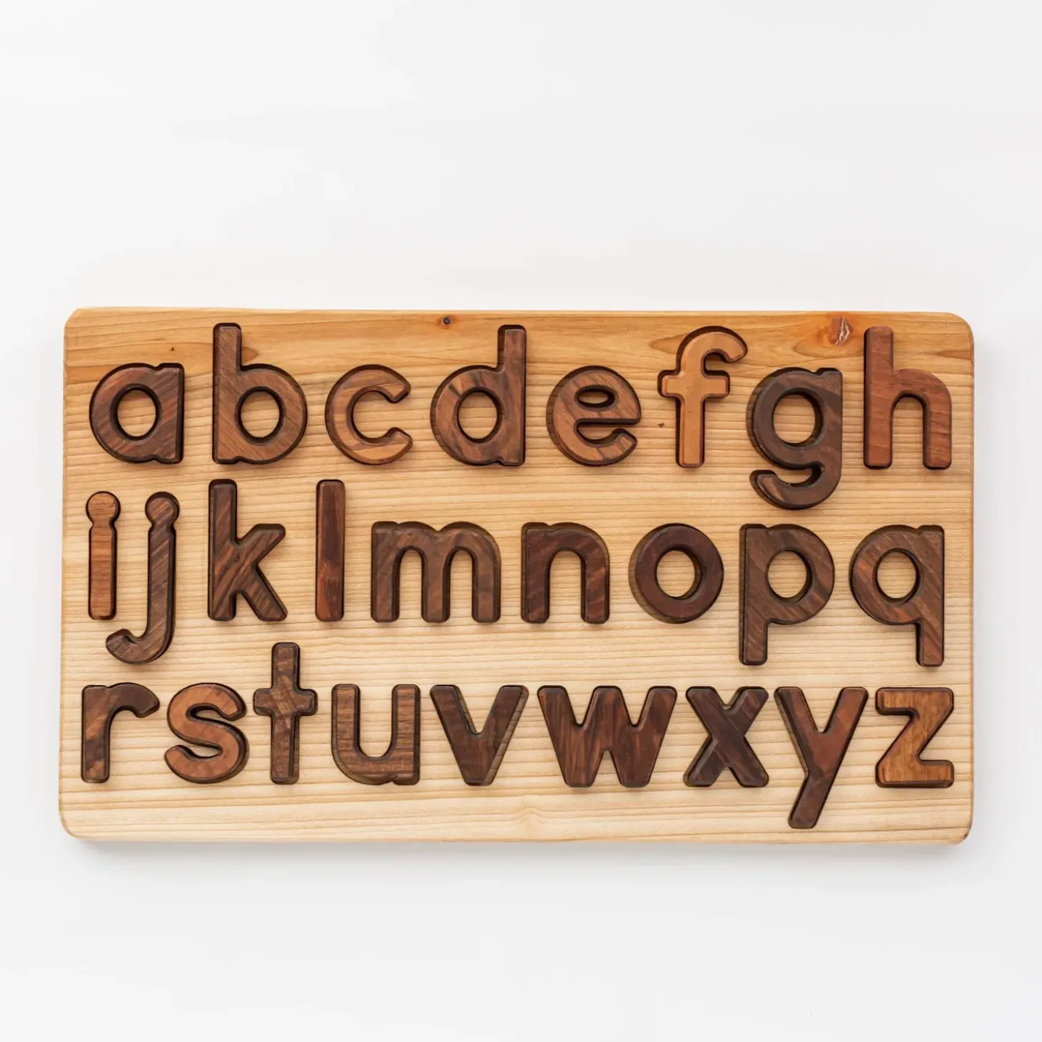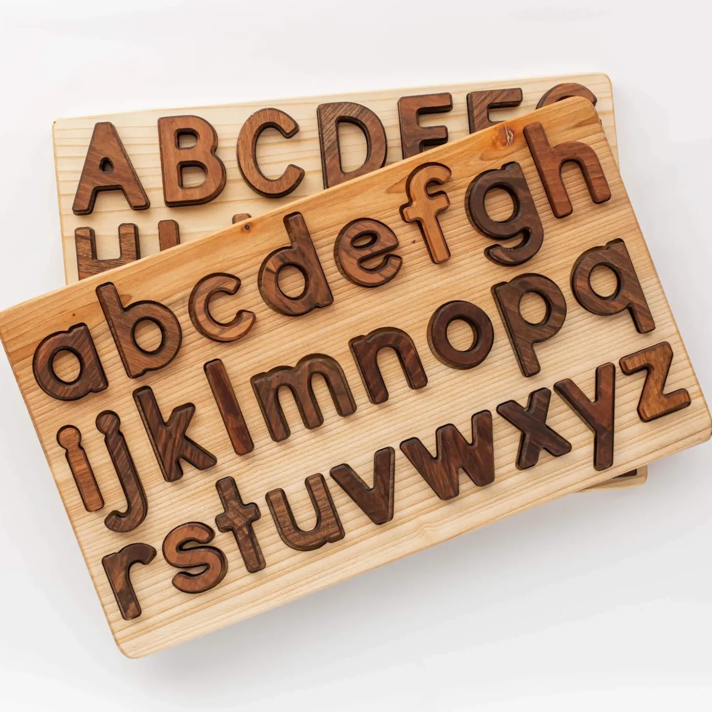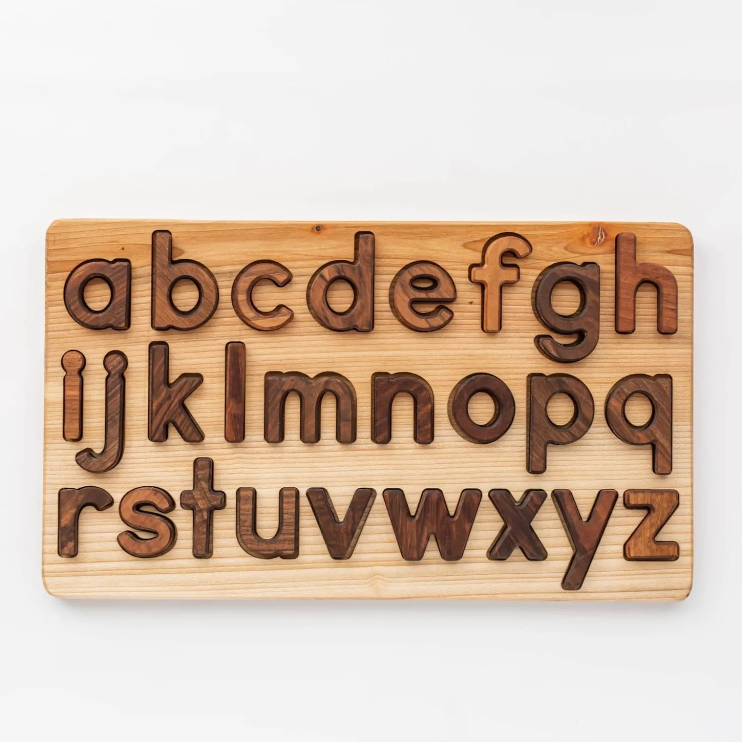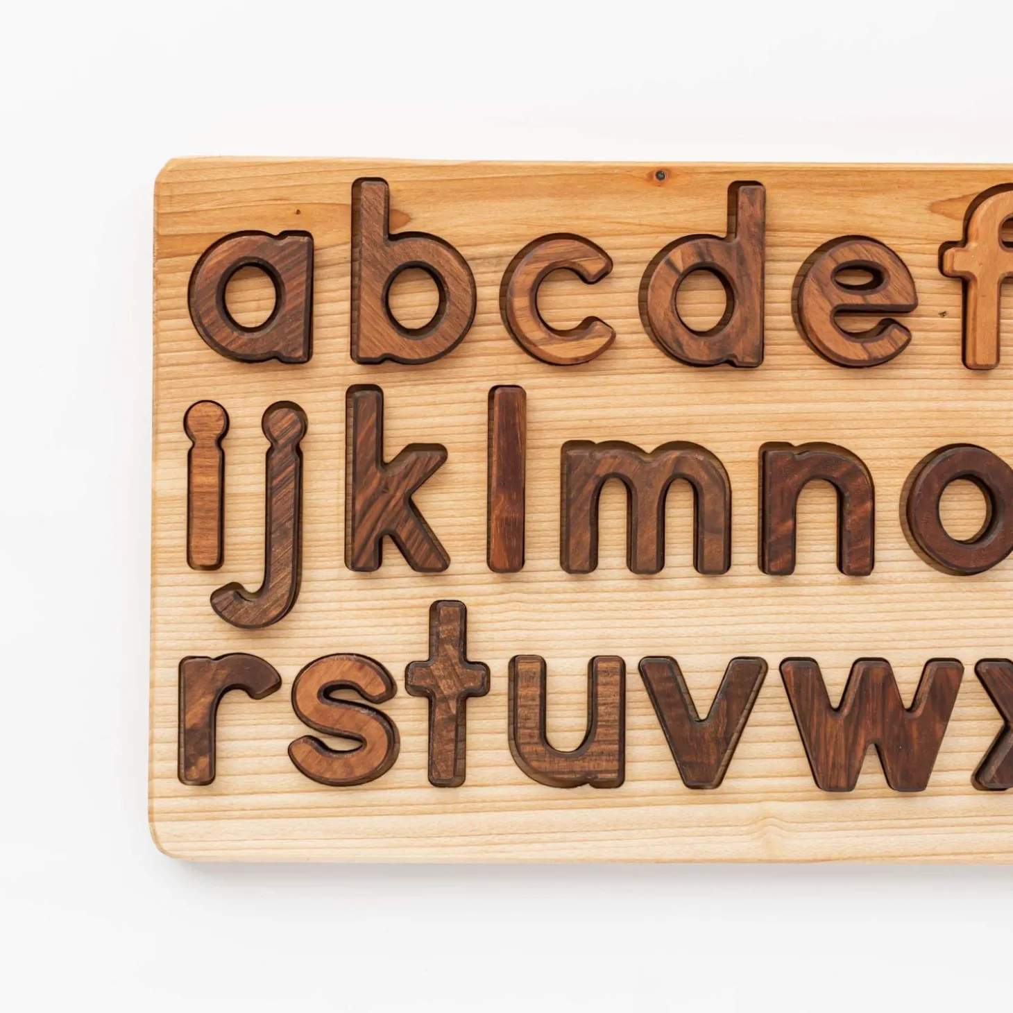 The Lowercase wooden alphabet puzzle is the companion to our beautiful Uppercase Alphabet Puzzle. A true heirloom piece that will grow with your children and be passed down for generations!