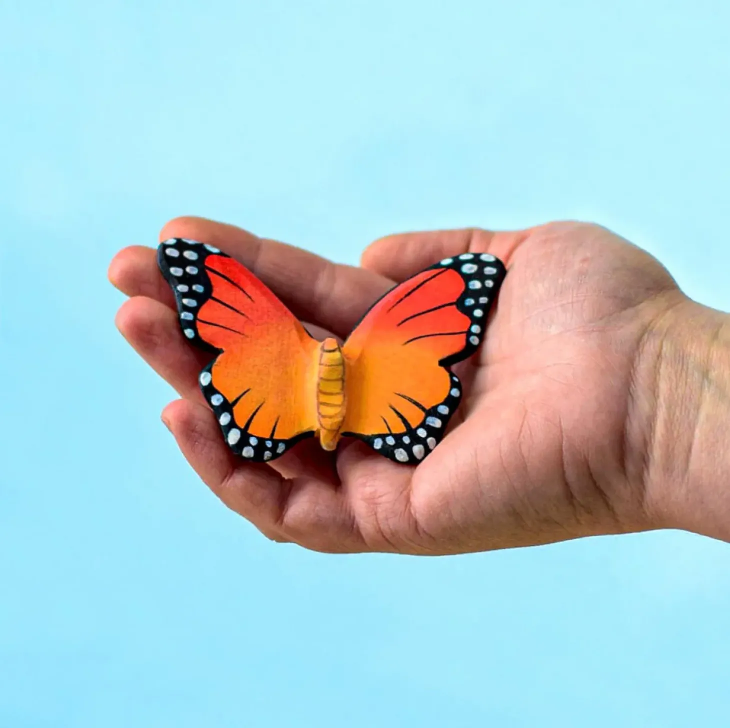 Introduce your child to the wonders of nature with the Wooden Monarch Butterfly Figure by Bumbu Toys. Watch their imagination and love for the environment grow with each playtime adventure!