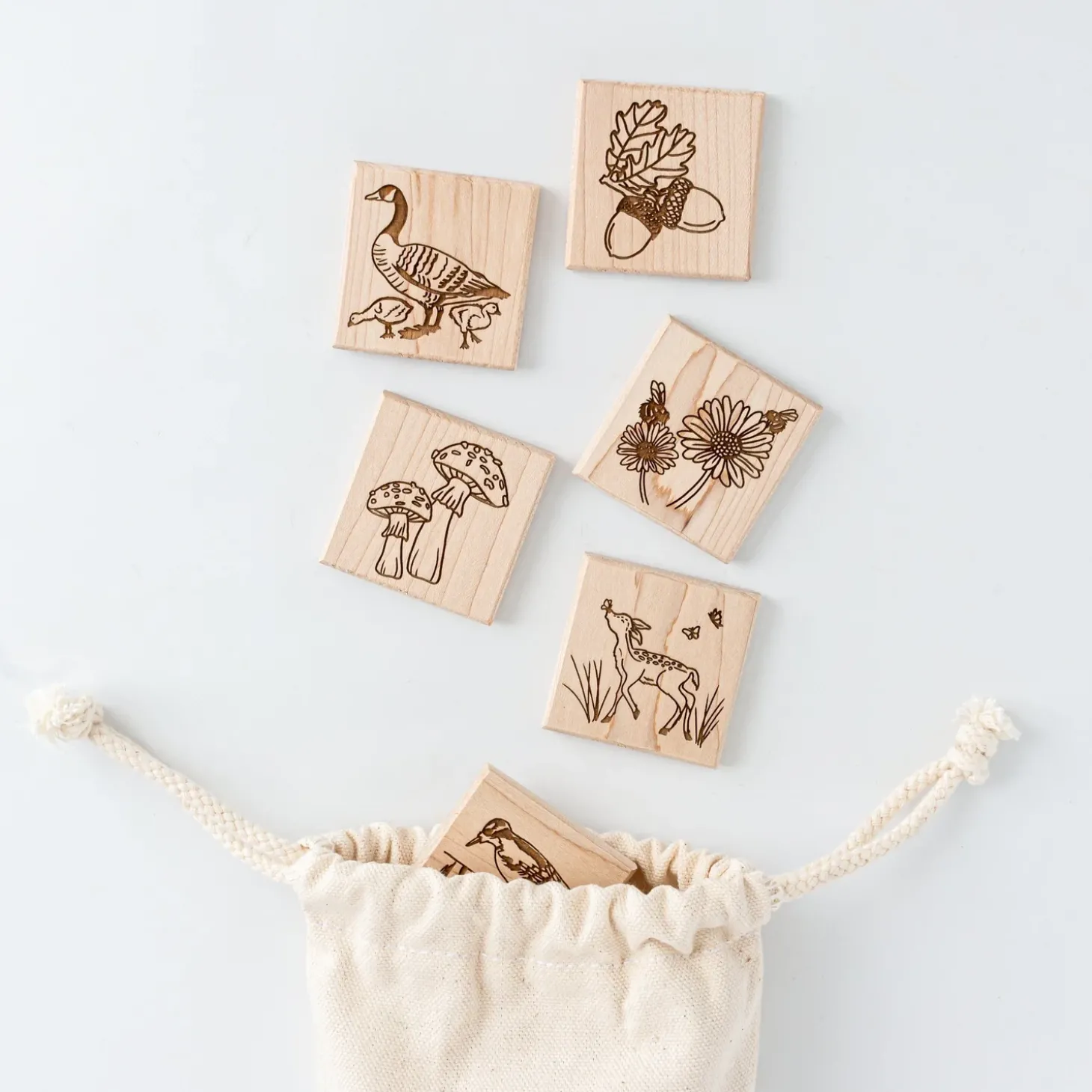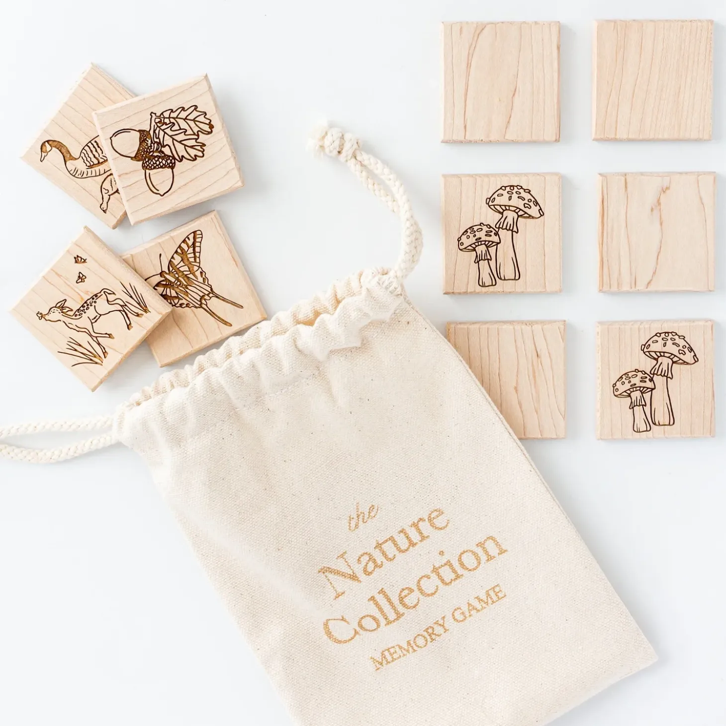 A new exclusive to The Playful Peacock, say hello to the Nature Collection Matching Memory Game – abeautiful heirloom set ofintricate wooden matching tiles that make a fun and educational game to entertain children of all ages. Made of solid CanadianMaple hardwood, these tiles are designed to withstand generations of play.