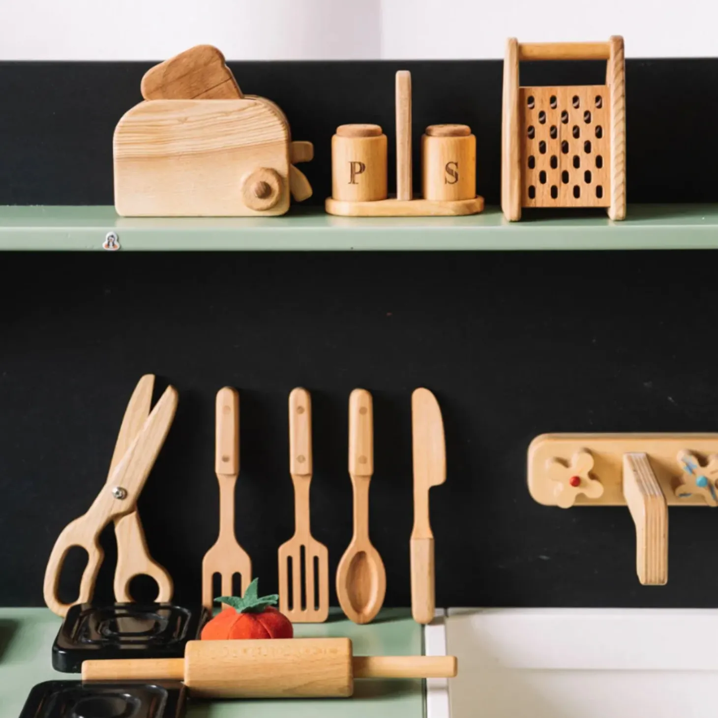 This charming duo is perfect for seasoning playtime with imagination and joy, allowing children to explore the culinary world in the comfort of their own home play kitchens. Pair it with our wooden toaster and kitchen tools set for the ultimate play experience!