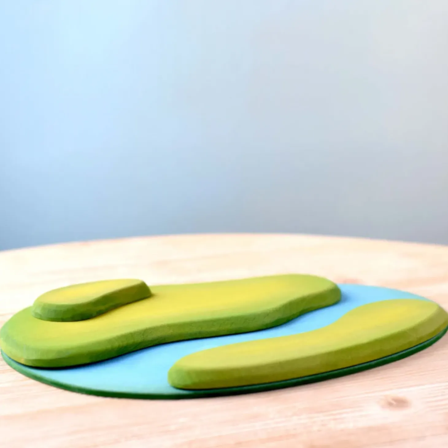 Immerse yourself in the tranquil beauty of nature with the River Plate by Bumbu Toys, a masterpiece that mirrors the serene essence of a flowing river. This exquisite wooden piece, painted in calming shades of blue and edged with lush green banks, invites children and adults alike into a world where the gentle currents of imagination run deep. Perfect for storytelling adventures, educational explorations of river ecosystems, or as a soothing decorative element, this River Plate transforms any space into a peaceful riverside retreat.